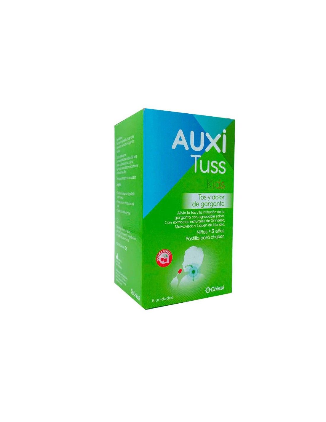 Auxituss Kids Pastillas Para Chupar, alivia la tos seca y productiva y el dolor de garganta entre niños de más de tres años gracias a la acción calmante y protectora.