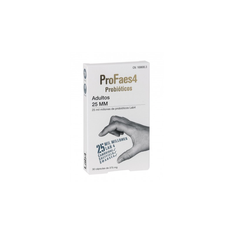 Complemento alimenticio en forma de cápsulas a base de probióticos y fibra (fructooligosacáridos).